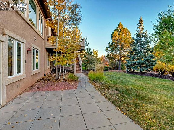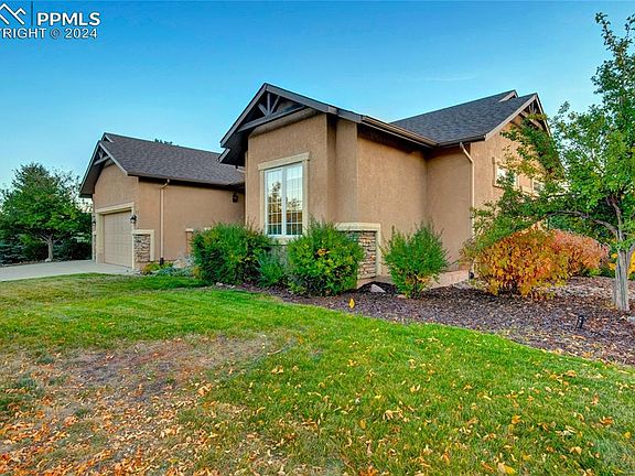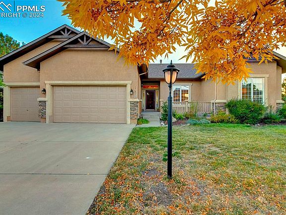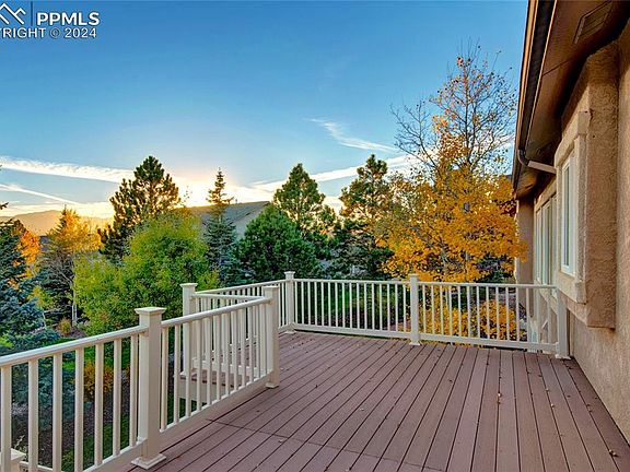 Welcome to this magnificent walkout ranch nestled in the prestigious Willow Glen enclave in Pine Creek. This semi-custom Symphony Home epitomizes luxury, offering unrivaled views of Pikes Peak from every vantage point. Nestled on a tranquil street graced with one-way access, this property exudes an air of exclusivity while ensuring effortless access to I-25, the esteemed USAFA, top-tier D-20 Schools, world-class hospitals, scenic nature trails, and idyllic neighborhood parks. Golf aficionados will relish the proximity to the renowned Pine Creek Golf Course. The main level boasts two impressive bedrooms, a full bath, and an inviting Primary Suite with a five-piece bath and spacious walk-in closet. The heart of the home is the gourmet kitchen, recently updated with a new gas downdraft range, a double oven, an expansive island, pristine quartz countertops, and an inviting breakfast bar. The formal dining room, appointed with newly installed hardwood flooring, offers an elevated culinary experience, while the breakfast nook gracefully ushers you to the generously proportioned composite/partially covered deck. The great room, graced by a striking stone gas fireplace, offers views that stretch into infinity. Functionality awaits, with the main level laundry adjacent to the kitchen, leading to an oversized 3-car garage. Descending to the walkout lower level, you'll discover 9-foot ceilings, a second gas fireplace, two bedrooms with walk-in closets, and two full baths. This home not only captivates with its aesthetics but also impresses with its energy efficiency, courtesy of its dual-zone furnace. The impact-resistant roof and 2x6 construction ensure enduring durability. The property showcases professional and mature landscaping, featuring an abundance of stately trees and verdant shrubs that offer seclusion on one of the largest lots in the Willow Creek subdivision. This is a rare opportunity to immerse yourself in the ultimate Colorado living experience!