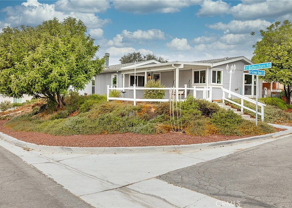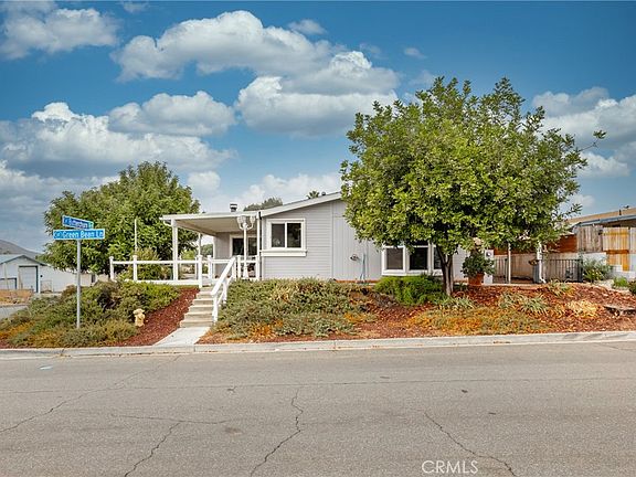This charming 3-bedroom, 2-bathroom, 1,644 SQFT home in "The Farm" community of Wildomar offers the perfect blend of comfort, convenience, and vibrant living. Nestled on a spacious corner lot with no front neighbors, with a permanent foundation, the property provides peaceful views of open fields and a long driveway with ample parking. As you step inside, you'll be welcomed by neutral tones and abundant natural light, creating a warm and inviting ambiance. The spacious living room features a beautiful fireplace, perfect for cozy evenings, and large windows that let in plenty of natural light while offering serene views of the open field out front. Just outside, the front porch includes an attached swing, making it the perfect spot to relax with a glass of lemonade and enjoy the peaceful surroundings. Each bedroom is spacious and filled with natural light, while the master suite boasts a large walk-in closet with built-in shelving and a beautifully remodeled, modern bathroom. The dining area exudes elegance with a built-in China and serving cabinet, and the adjacent laundry room offers easy access to the backyard. The enclosed patio is an ideal spot for private BBQs, while the meticulously maintained garden areas offer ample space for planting and enjoying nature. Multiple water spigots around the property make it easy to care for the garden, while the serene views of the natural landscape enhance the home's peaceful setting. A detached two-car garage, along with a separate shop that features a large second-floor storage area, provides plenty of room for your projects and storage needs. Living in "The Farm" means becoming part of an active, close-knit community with regular events such as a Halloween carnival and a July 4th parade. The neighborhood offers a wealth of amenities, including three pools, two spas, tennis and pickleball courts, a volleyball court, three RV storage areas (available for just $45 a month), and both small and large dog parks. The community also features citrus groves where residents can pick fresh oranges, lemons, and two varieties of grapefruit. With 600 acres of common area, 38 acres of citrus groves, an amphitheater, hiking trails, sports fields, and more, this community truly feels like a getaway. Plus, with the home just minutes from the community pool, you’ll have easy access to all the recreational opportunities. Call for a showing today!