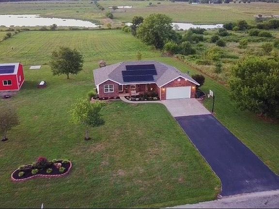 Amazing sunsets await on the deck of this beautiful 4 bed 3.5 bath with an office. huge walkout basement, 2nd living room, wet bar with an outdoor patio area. his and her closets, soaking tub large safe-room / Tornado Shelter storage room. . Almost 5 acres accompany a ready to use 30 x 40 work shop, Kids Play ground and more! All this with solar already in place! 20 minutes to Springfield. Ready to get out of the city? This country home is a must see! More acreage available!