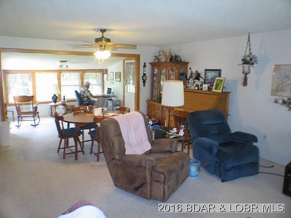 Beautiful setting overlooking private (owned) stocked lake. Newer kitchen cabinets, carpet, sun room. Oversize 2-car & 1-car detached garages, plus nice workshop. Just minutes to boat ramp & just off paved road.