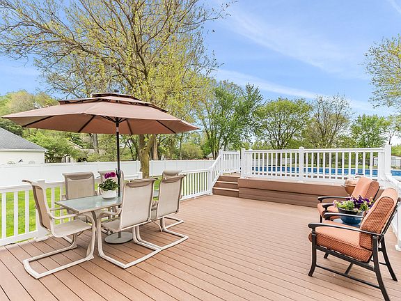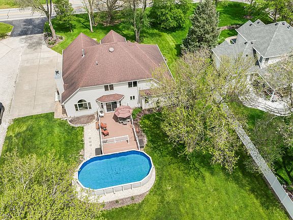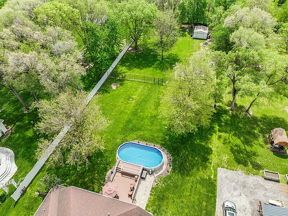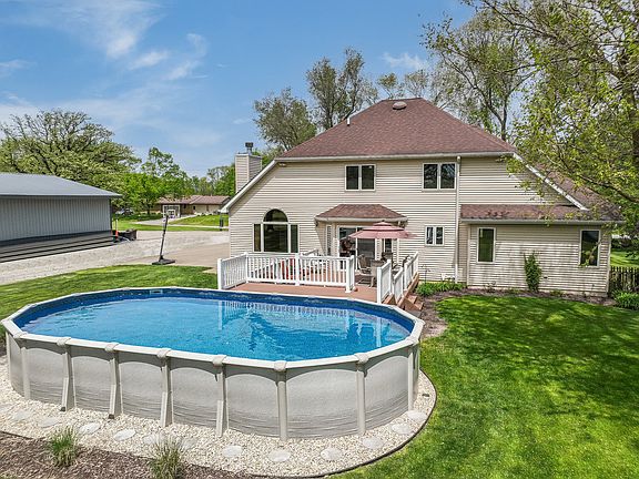 Welcome to your dream home on almost ONE ACRE!!! This stunning 2-story property boasts 4 bedrooms plus a loft, 3.5 baths, and an impressive 3200 sq ft of living space. Step inside to discover vaulted ceilings, a charming brick fireplace, and elegant hardwood flooring throughout. 2 story dramatic foyer and Kitchen is open to the Great room - perfect for entertaining! Newer patio doors (2019) in kitchen bring you to the beautiful newer TREX deck! The main floor master suite offers ultimate convenience, complete with its own en suite bath. But the features don't stop there! The finished basement adds even more versatility with 2 additional bedrooms, a bath, full kitchen, and ample storage room and possible separate entrance- ideal for related living! The entire basement has been waterproofed from US waterproofing. One set of washer and dryer is staying, however the second set could possibly be staying. Enjoy your own backyard oasis which is just shy of an acre lot (.95), featuring a fenced yard, inviting pool, garden beds has water nearby, and a shed with electric connections! It makes gardening & workshopping a breeze! Updates include a peroxide system, brand NEW carpet throughout, freshly painted walls, NEW refrigerator in kitchen and a newer Trex decking surrounding the newer pool-approx. 2 years! Parking is a breeze with the 2-car garage, boasting a heated epoxy floor and workshop area. The extra long driveway is convenient for guests! And say goodbye to gutter cleaning thanks to the leaf guard gutters! A central vacuum for the house makes cleaning a breeze. Tank is in garage. Seller never used the central vac nor the heated floors in the garage so both are sold as-is. . The asphalt sealed drive apron from Bluff is shared but neighbor and seller each have their own driveways. This home is minutes from I55, the Channahon park district pool & Heritage Bluff golf course. Don't miss out on this incredible & RARE opportunity to call this meticulously maintained property your new home sweet home! ***Seller gets a credit from the Channahon school district the past 2 years as a tax rebate. She received $3130 on last credit.