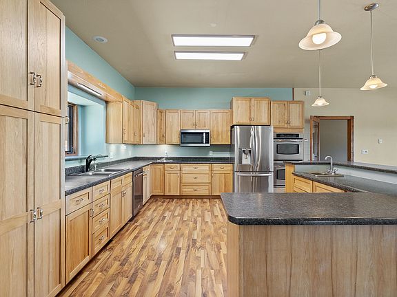 FOR SALE BY ONLINE AUCTION ONLY, bid online at ramseyauctions.hibid.com Bidding opens on Friday, July 21st, at 10:00 am MDT Auction begins closing on Thursday, July 27th, at 1:00 pm MDT 12 ACRE BLACK HILLS GEM! This gorgeous property is minutes away from Custer State Park and a short 20-minute drive to Rapid City! The 12+ acre property is nicely treed and has incredible views of the Southern Black Hills. The open floor plan boasts a beautiful kitchen with a center island and salad sink, a very large and inviting living room with a gas fireplace, a nice dining space,vaulted ceilings and floor to ceiling windows with Southeast exposure. The master suite features a tray ceiling, walk out to the deck, large bathroom with jetted tub and tiled shower, and a spacious walk-in closet. There is a 3/4 guest bathroom on the main floor with a mudroom/storage area. The attached three car garage is heated. The lower-level features in floor heat, has three bedrooms - each with their own walk-in closets and vanities, along with a very large family room with a walk-out, a den, an additional bathroom, and the laundry room. In addition to the house and garage, there is a 50' x 72' garage/shop with three large separate bays and a fourth bay large enough for most any RV, all totally insulated, wired, and complete with in-floor heat. There is also a 64' x 32' pole barn with an office, most recently used as a horse barn.