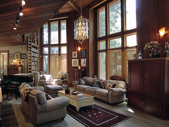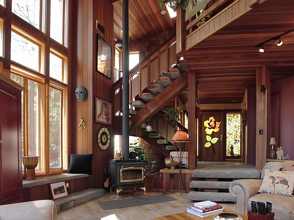 A true one-of-a-kind masterpiece with soaring spaces and open floor plan. Light and bright with huge floor to ceiling windows, skylights, clear heart redwood interior. Dramatic design shows off private setting on nearly one half lot. Seasonal creek, large storage shed, ample decking, upstairs tiled and screened-in balcony with views of Lily Rock and Suicide Rock. Tankless water heaters in tandem, Newer roof, Italian porcelain tile flooring, subzero frig, Huge lot offers great privacy in one of Idyllwild's finest neighborhood. This home is for the discriminating buyer who is looking for distinctive style and superior quality. Updated and maintained immaculately.