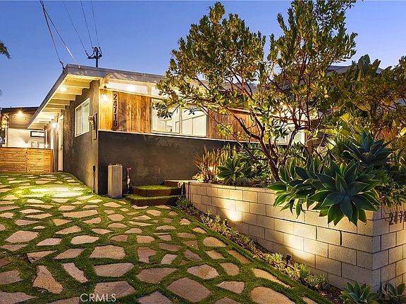 Discover luxury living in this beautifully renovated 2-bedroom, 1-bathroom home with an exceptional 400 square foot ADU with 1 bedroom and 1 bathroom. On your approach to this home, you will notice the elevated curb appeal and custom flagstone and grass pull-thru driveway. The main home boasts sleek porcelain tile flooring throughout, paired with stunning cedar wood ceilings for a modern yet inviting ambiance. The quartz countertops in the kitchen and bathrooms, along with a subway-tiled shower, add a chic, spa-like feel. Enjoy energy-efficient features like vinyl windows, a tankless water heater, and a mini-split AC system. The home is entertainment-ready with in-wall wiring, pre-wired surround sound, and a refreshing outdoor shower for post-beach days.