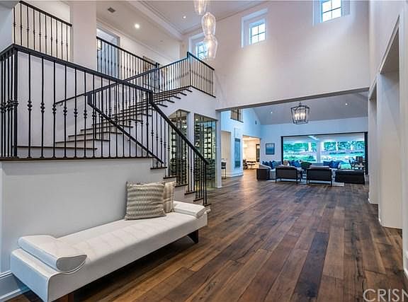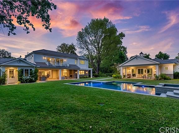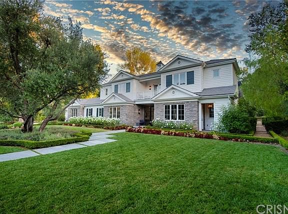 Absolutely epic East Coast Modern traditional with a premier location in guard gated Hidden Hills. Newer construction masterpiece ideally set on over an acre with complete privacy! Designed and built with the highest level finishes throughout. Tremendous open concept floor plan providing every amenity and feature desired. Features include a grand two story entry, state of the art theater, bonus/game room with wet bar, glass enclosed temperature controlled wine room, elevator, beautiful office/library, and a spectacular double island chefs kitchen with two pantries and top of the line commercial grade appliances. Upstairs, there are three large secondary en suite bedrooms and an incredible master suite! The grounds are simply breathtaking! There is a rare detached one bedroom guest house, amazing large covered patio with outdoor kitchen, custom pool and spa and massive manicured lawns all surrounded by impressive mature landscape. Other features include smart home system, pocket doors, four car garage, two laundry rooms, mud room and much more.