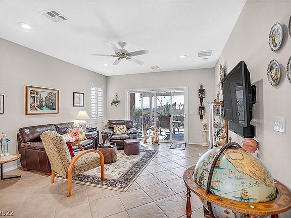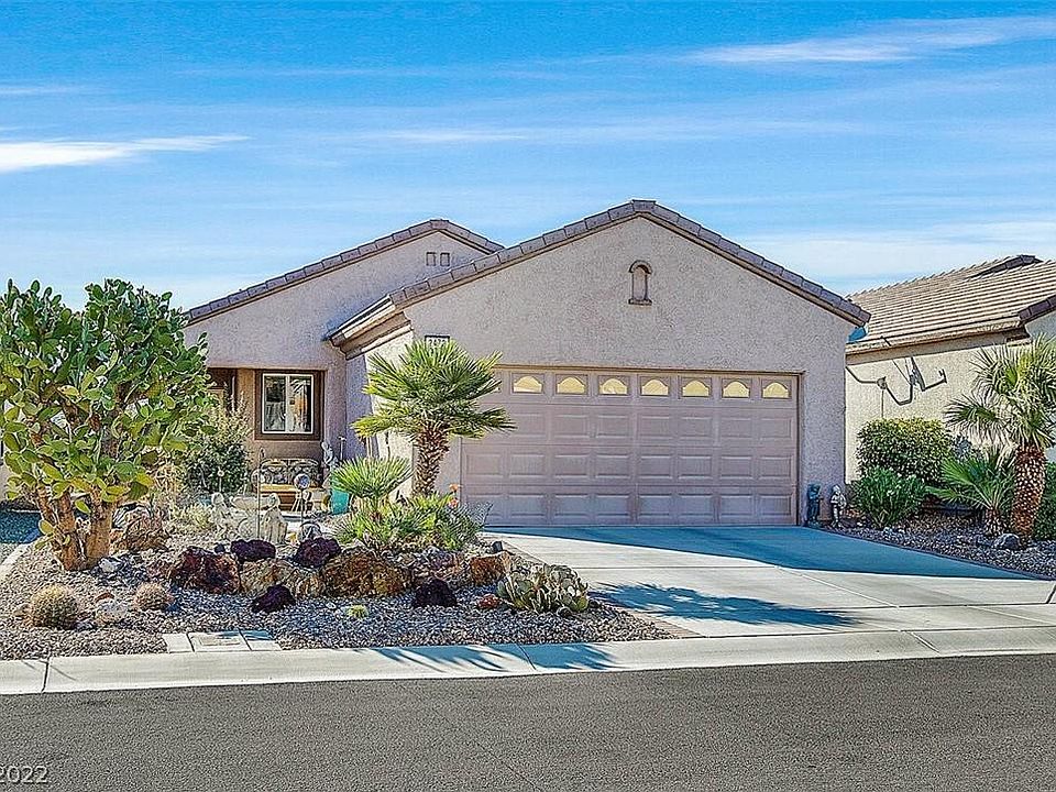Highly upgraded single story home in Sun City Solera! Lots of amenities for the Active Adult lifestyle! Community Pool. Fitness, Clubhouse, Pickleball, activity and fitness groups & more! Home has tile throughout. Granite Countertops throughout. Stainless Steel Appliances. Extended covered patio. Plantation shutters. Automatic shade across back door. Tinted windows. Storage racks and workbench in garage which has epoxied floor. Premium Lot set high above neighbors behind and expansive mountain views. Nice landscaping. HVAC Replaced in summer 2020. This home is a great value!