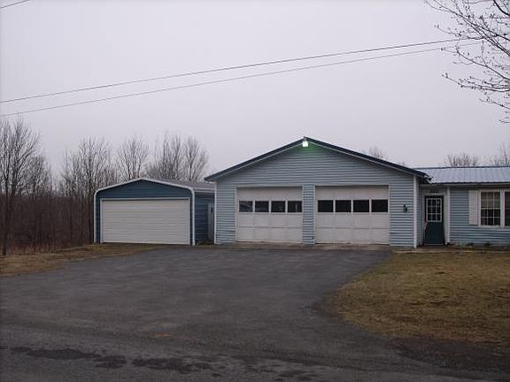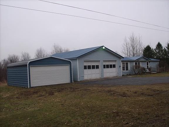 Affordable 3 bedroom 2 full bath 1988 Champion country home on 4.8 acres!! Attached huge garage with 2 bays & concrete floor leads into enclosed back porch/mudroom. Separate detached garage for additional space! Awesome yard offers peace & tranquility. Perfect for bbqs & ball games!Welcoming front porch & flowerbeds.spacious living room opens into an open concept kitchen /dining room with sliding glass doors leading to a huge deck with above ground pool! Master bedroom with private bath and large walk in closet! Many possibilities with this country home! Call today!!