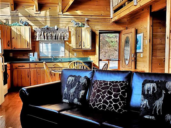Awesome 1BD, 1BA log cabin located between Gatlinburg and Pigeon Forge in the Sky Harbor Community. This cabin comes fully furnished and doing very well on the overnight rental program. Interior features include cathedral ceilings with fixed glass windows, hardwood flooring throughout, spacious ''great room'' floorplan—living room with beautiful stone gas-log fireplace and eat-in fully equipped kitchen. Master Suite on main level with queen log bed, a jet tub for soaking plus private bathroom. Upstairs, the loft game room includes pool table, TV and love seat. Full length porch on back side of cabin offers a wonderful place to escape to—complete with porch swing, comfortable rocking chairs and a relaxing hot tub! The cabin has been meticulously cared for and is in top notch condition.