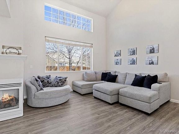 Welcome home to this beautiful three-bedroom, two-and-a-half-bathroom home! Nestled in the serene Sterling Hills neighborhood, this residence boasts convenience and comfort at every turn. Step inside to discover a thoughtfully designed main level featuring vaulted ceilings and a three sided fireplace. The kitchen dazzles with new white cabinets, offering ample storage and a contemporary touch. Adjacent, the laundry room adds practicality to your daily routine and a convenient half bath is also situated on the first floor. Gleaming wood vinyl floors adorn the entire space, lending warmth and elegance throughout. Natural light floods the interiors, enhancing the airy ambiance and highlighting the pristine white hues that define this home.Upstairs you will find the primary suite, complete with a walk-in closet and large ensuite bathroom with private water closet. The two well-appointed bedrooms provide comfort and versatility with the second full bathroom close by. Upstairs you will also find a small nook which can be used as a study or exercise area. Step outside to your own private retreat - a beautiful deck overlooking a spacious backyard, inviting endless opportunities for relaxation and outdoor entertainment. This community is close to shopping, restaurants, parks, and quick access to DIA and Buckley Air Force Base. Don't miss the chance to make this bright and inviting sanctuary your own!