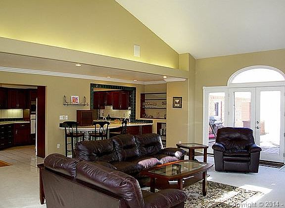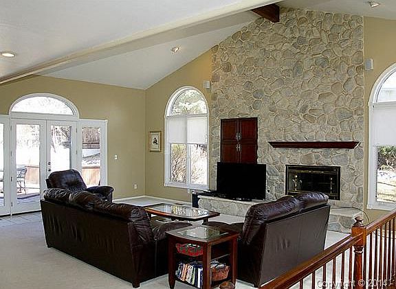 Spacious home with inviting front porch near Palmer Park and the Colorado Springs County Club. *Large kitchen with upgraded cabinetry and solid surface counter tops. *Spacious dining area that can accommodate a long dining room table. *Office/Den area with crown molding, chair railing, stained glass fixture, French doors and fireplace. *Fabulous living room addition with stone hearth fireplace, built ins, vaulted ceilings, wet bar and access to the deck and back yard. *See supplemental remarks *4 bedrooms. *Master bedroom with fireplace and walk in closet. . *Harwood floors on much of the main level and upstairs. *The basement area family room is great for entertaining and has a built- in bar with keg-a-la tor. Marvin windows throughout. *The garage is oversized with room for a workshop and a golf cart without interfering with spaces for your other vehicles. *Storage shed and privacy fence in the back yard. *Mountain and Pikes Peak views.