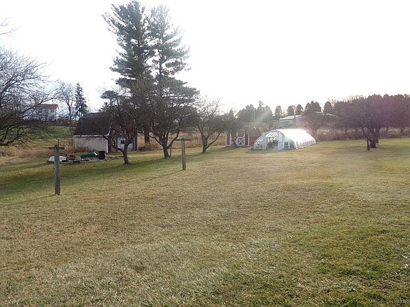 This brick and stone ranch features 3 bedrooms, living room with fireplace, kitchen with dining area and lots of storage, a heated solarium, a breezeway and an attached 2 car garage. There is a full basement with a second bath. The lot size is 1.25 acres and there are numerous out-buildings. A second driveway offers additional parking.