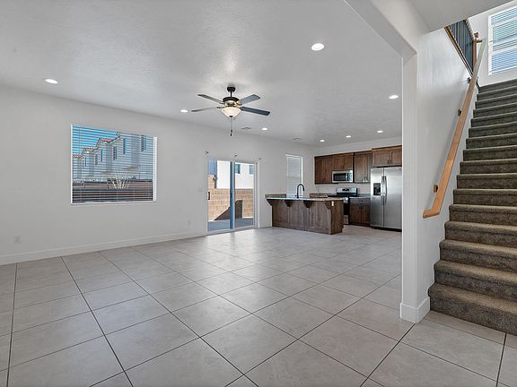Turnkey townhome with stunning views! This end unit backs up to green belt with beautiful views of pine valley. Large open floor plan including the kitchen with quartz countertops and stainless steel appliances. The spacious primary bedroom is equipped with a large walk-in closet. Private patio and double car garage with driveway. Convenient location in Hurricane to shops and freeway.