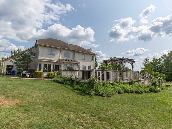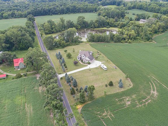 Back on market through no fault of the seller! If a peaceful retreat with a serene setting is what you crave, wait until you experience this custom-built home on more than two acres, sure to check all your boxes! This impressive home has a well thought out floor plan, spacious rooms, and quality details. As you enter the home you are greeted by a grand 2-story foyer with elegant twenty inch porcelain tile flooring. To your left is a vaulted living room with an abundance of natural light; to your right is a formal dining room large enough to accommodate all your dinner guests. The expansive cook’s kitchen boasts granite countertops, tile backsplash, stainless steel appliances, a double wall oven, sizeable island breakfast bar with extra sink, a walk-in pantry, and high-end cabinetry with soft-close doors and drawers and built-in desk. Enjoy your morning coffee in the breakfast room surrounded by large windows overlooking the backyard and deck. The gas fireplace takes center stage in the 19’ x 17’ family room, and French doors lead you to a bright sunroom with vaulted ceiling and triple skylights and features a wet bar with wine rack. Upstairs you will find four generously sized bedrooms and three full bathrooms. The fourth bedroom has additional storage which could even be finished for more living space. The owners’ suite has two walk-in closets, a bathroom with jetted corner tub and separate shower, private water closet, and dual vanities with upper cabinets. Descend the stairs to the enormous, finished basement with 10’ tall ceilings. This is the ultimate entertaining rec room and includes a home theatre area, pool table with table tennis topper, surround sound, gas fireplace, walk-in sauna, full bathroom and several storage closets. The three-car extra-deep garage has an epoxied floor and a workbench with shop lights so you can tackle all your projects with ease while offering extra storage space. The oversized deck has a pergola and solar lights and a huge hot tub so you can relax and take in the peaceful surroundings. The level yard is complemented by mature pine trees in the front, established landscaping, a fire pit, a stamped-concrete walkway, and is surrounded by farm fields or trees on three sides. Recent improvements include the concrete paved driveway, two new zoned air conditioners, and a new railing on the deck.