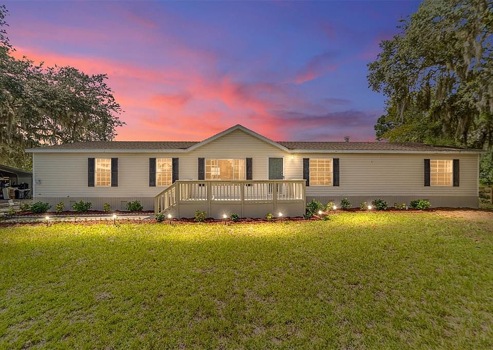Charming home on .62 acres with serene lake views. Discover tranquility and modern comfort in this charming home, perfectly situated on two lots with 85 feet of waterfront along Little Lake Kerr. Nestled at the end of a quiet dead-end street, this property offers a serene escape with protected wetlands where waterfowl, deer and fish thrive, creating a picturesque and peaceful environment. Inside, the spacious floor plan includes four comfortable bedrooms and two well-appointed baths. The heart of this home is its brand-new kitchen, designed with the modern chef in mind. Featuring gleaming stainless steel appliances, a massive island perfect for meal prep or casual dining, and a custom-built pantry, this kitchen is both functional and stylish. The home's layout includes a cozy family room with a gas fireplace that has never been used, offering a versatile space for relaxation and gatherings. Additional living areas include a bright living room and a dedicated dining area, providing ample space for both everyday living and entertaining. Step outside onto your screened-in lanai and immerse yourself in the serene sounds of nature while taking in the amazing sunsets on the water's horizon. Whether you're sipping your morning coffee or hosting a summer barbecue, this outdoor space is perfect for enjoying the tranquil setting. Outside, the property continues to impress. Enjoy your own private dock, perfect for mooring your boat and taking advantage of the stunning waterfront views. A 14-by-24-foot workshop offers versatile space for hobbies, storage, or DIY projects. This home offers a rare combination of space, comfort, and a peaceful location, making it an ideal choice for those seeking a serene escape with modern conveniences. Don't miss the opportunity to make this peaceful retreat your new home!