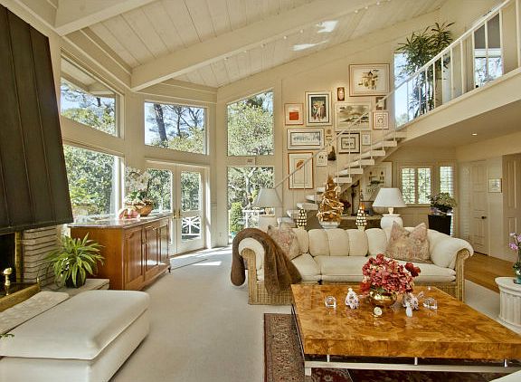 High above Carmel with views of the Pacific and Point Lobos a special home waits among the treetops. The peacefulness found in this extraordinary 2BR, 2.5BA, home is truly unsurpassed. Offering an open beamed 2-story living room with fireplace and French doors leading to a large deck with it warm southern exposure, it is truly difficult to know where the inside ends and the outside begins.