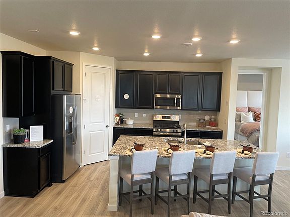 Available for move-in February 2024! Beautiful ranch style Graham is the model and features 3 beds, 2 baths, great room, kitchen, unfinished basement & 2 car garage. Gorgeous upgrades and finishes throughout including stainless steel appliances, luxury vinyl plank flooring, custom model landscaping and more. The open kitchen & dining area is great for family gatherings. Lennar seamlessly blended & showcased the unparalleled beauty of Colorado with the most innovative homes, energy efficient technologies & modern conveniences, bringing the best of both worlds together. Each floor plan is thoughtfully designed to combine elegance & luxury together with hi-tech energy efficient features. What some builders consider high-end upgrades, Lennar makes standard. Colorado living at it’s finest. Close to dining, shopping, entertainment & other amenities. Don’t wait – this community will sell out quickly! Welcome Home! This home is the model and is sold as-is. Staging items are available for separate purchase.