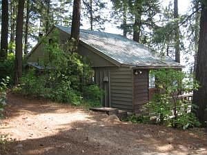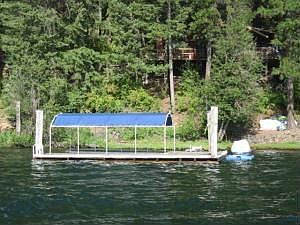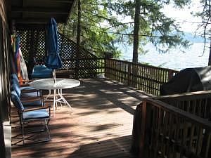 Coeur d'Alene Lake, Cottonwood Bay, 100' frontage, 2 bdrm, 1 bath, 914 sq ft cottage, large deck area, covered slip/dock, level beach area.