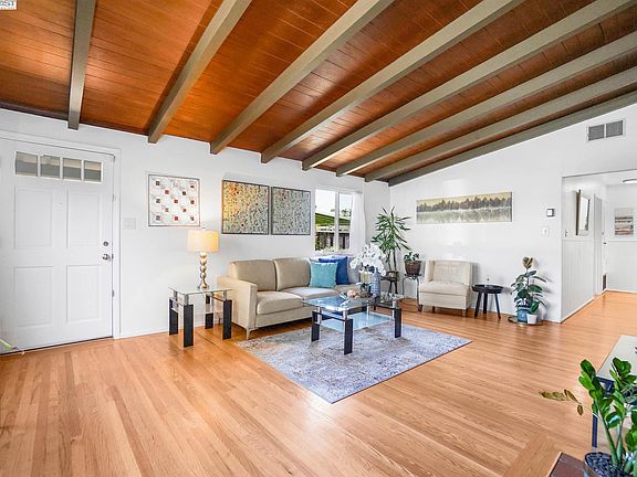 Beautiful expansive Southgate stunner! Clean and low maintenance front landscaping with expanded driveway that can easily fit 4 to 5 vehicles. In addition to the driveway, you have side yard access to store more cars, a boat or RV! The interior is bright and spacious with updated paint and hardwood flooring throughout. The living room has beautiful wood beams on the ceiling and a central brick fireplace. The oversized front family room has brand new carpet and an additional space that can be used as a dining area or office space. The kitchen has brand new flooring, beautiful tile countertops, a breakfast bar and pantry! Three spacious bedrooms, all with beautiful hardwood floors. The primary suite has backyard access, two closets and your en suite bathroom. The oversized backyard is the perfect space to entertain! large patio area, covered deck off the side yard, space to garden. Don't forget about the additional structure in the backyard that can be used as an office, playroom or gym space! Newer roof and dual pane windows! Central location as you are minutes from the 880/92 HWY, local restaurants and shopping.