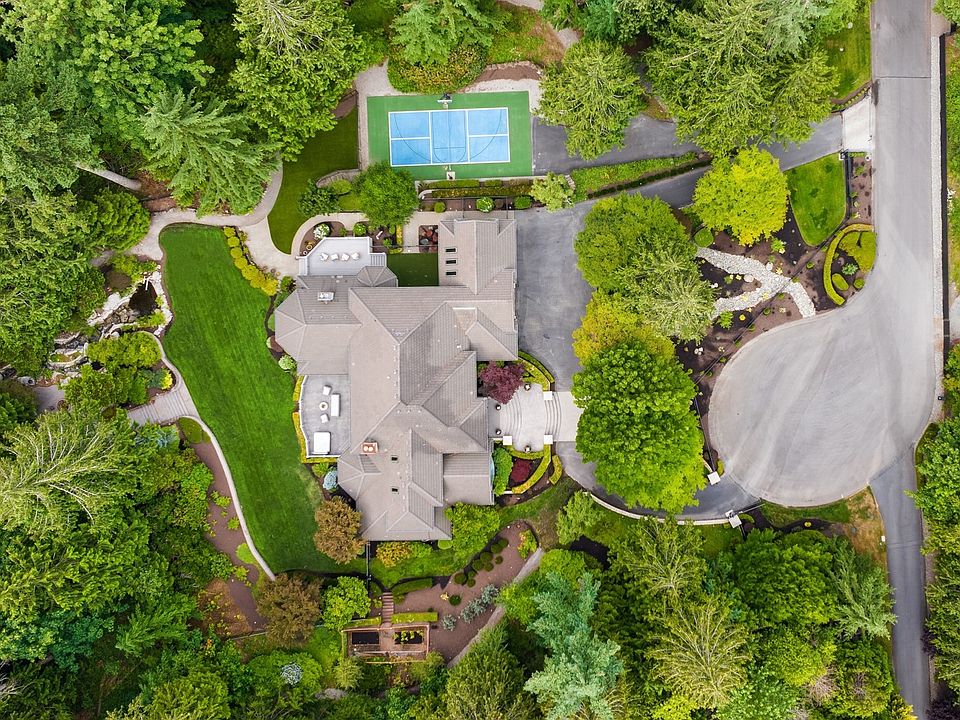 Impressively sited on 4.4 manicured, fully fenced acres, this gated Issaquah estate boasts light-filled spaces & fine craftsmanship. A private oasis awaits: sport court, level lawn, multiple patios, hot tub, waterfall, an elevated patio in the trees with firepit & babbling creek bordering the property. The updated kitchen with luxe stonework & cabinetry is ready for entertaining + everyday living with informal eating space & adjacent soaring great room with generous windows highlighting the natural environs. Primary suite on main & 3 additional bedrooms + flex space + bonus on the upper level. Rich wood office for those working from home. A 4-car garage offers 2 lifts! Minutes to terrific Issaquah Highlands amenities, great schools & I-90