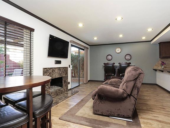 Welcome home to this fully remodeled 3 bedroom, 2.5 bath Orangewood tract beauty centrally located on a charming cul-de-sac! Guests enter the home & are welcomed into the foyer with vaulted ceilings, beautiful ceramic tile flooring & neutral designer paint. Living room is spacious with recessed lighting & a cozy fireplace that is adjacent to the formal dining room that overlooks the backyard. Large remodeled Kitchen with a walk-in pantry that opens to the family room with quartz counter tops, an under-mount sink along with recessed lighting. Samsung side-by-side refrigerator is also included. The family room has laminate flooring, a designer fire glass gas fireplace with stunning detail for ambience, truly a great space for entertaining! Oversized Master suite is spacious & grand in style w/vaulted ceilings, his & her closets & double door entry. Spa quality bath w/ quartz top dual vanities, a large dual head shower surrounded by travertine. Two additional complimentary bedrooms share another fully bath with onyx countertop, jacuzzi tub & travertine wall tile. With many windows & skylight this home has a lot of natural light throughout the day. Other features include built in cabinets in the garage, insulated garage door & newer garage door opener, storage shed & an indoor laundry room w/ ample cabinetry. Private backyard w/ lovely covered patio, a perfect place to relax on a summer night. This home shows impeccably & is a must see!