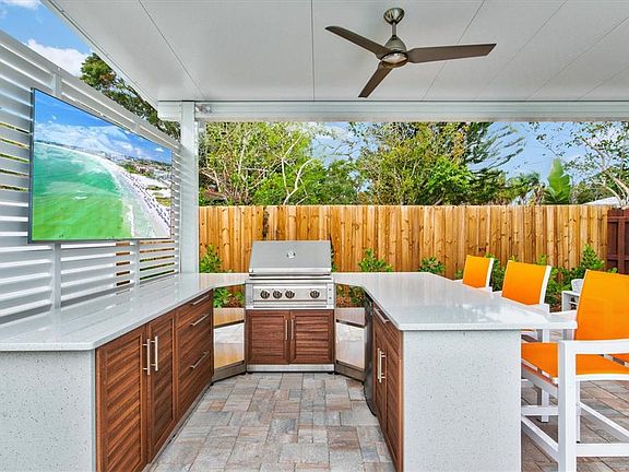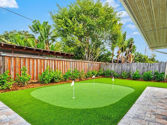 Fully fenced yardMid-century modern designer furnitureHeated saltwater poolOutdoor kitchenSaltwater pebble tec poolCovered outdoor kitchenMini golf area