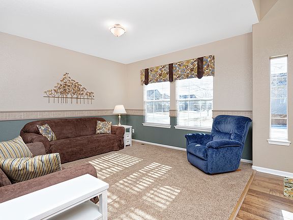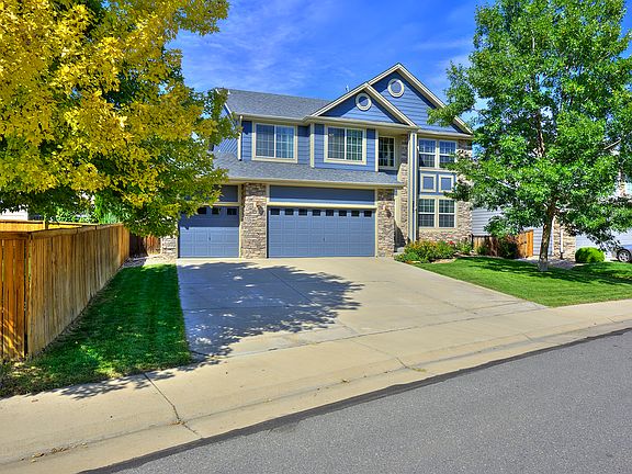 A fresh start and boundless horizons are yours from this spacious home backing to peaceful open space. Located in a coveted neighborhood with a great community pool, you'll be just 3 miles from the new outlet shops and minutes from I-25. Enjoy plenty of square footage for your every need, plus a soaring, two-story living room with new, manufactured hickory hardwood floors, tons of windows and light, and a staircase with custom-crafted handrails. Relish evenings by the fireplace or head downstairs for game night in the deluxe basement bar and game room (plus guest room, bath and storage). Plan some downtime in your large loft, the ultimate craft, hobby or play space. And start imagining warm days on the back, stamped-concrete patio surrounded by elegant landscaping and adjoining greenbelt. Carefree living in this friendly, safe area is even sweeter with fresh carpeting, a built-in humidifier, alarm system, LED lighting, central vacuum system and new water heater for peace of mind.