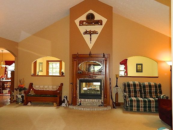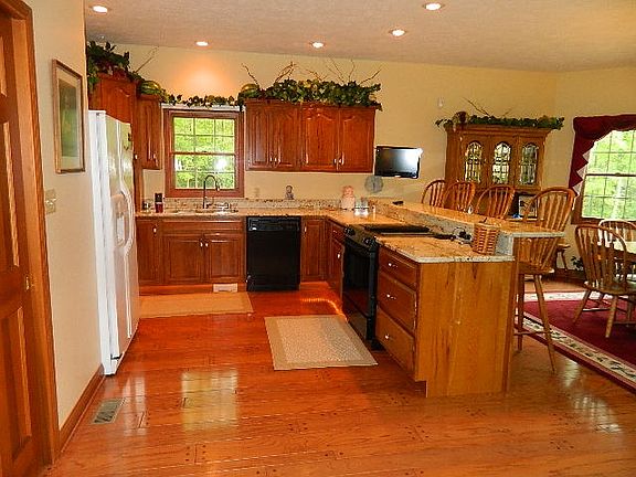 A LITTLE BIT OF HEAVEN! Fabulous 4 bedroom, 2.5 baths, all brick ranch with two car garage. Beautiful hickory kitchen cabinets and granite counter tops. Foyer 6'9 X 6'5. Separate 30 X 64 pole barn with 3 overhead doors, 3/4 bath & kitchenette. Stocked pond (1.25 acre) with pier for fishing. Totally wooded lot on 18.54 acres with 16.98 acres in State Registered Wildlife Preserve. Underground propane gas tank for fireplace and gas grill. Master bedroom suite with glass block shower, jetted tub, double vanity sink, 2 walk-in closets and sitting area (8'4 X 14'8) overlooking pond. Six panel doors. Custom built by Chase Custom Homes, Muncie. Skylights in 4th bedroom on 2nd floor and half bath. Open loop geothermal heating & cooling system. This is a hidden retreat!