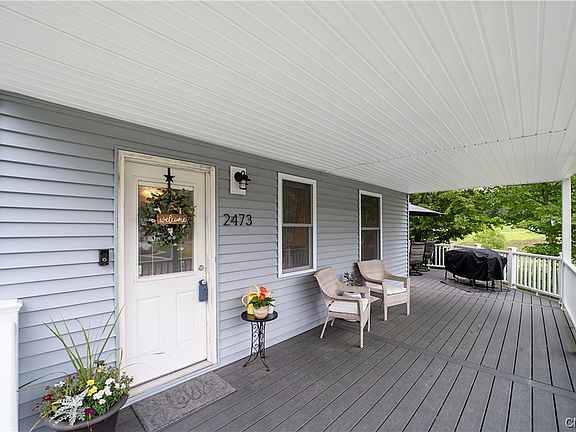 Introducing the Turn Key Colonial at 2473 Falls Rd in Marcellus - This 1,800+ Sq Ft 3 Bedroom Home sits on .80 Acres Surrounded by Tranquil Country Views. As you step inside you're greeted by an Open and Inviting Living Space, the Perfect Balance of Spacious and Cozy. In the kitchen you'll find Quartz Countertops, Solid Wood Cabinets & Generous Storage. Don't miss the Built-In Pantry with Swing out Shelving. Refrigerator, Oven, Dishwasher & Microwave convey with the sale. Aside the kitchen is a Functional Mudroom/Laundry Room Connecting to the Covered Back Porch. Upstairs are 3 Bedrooms and the Full Bath with a Tub & updated Vinyl Surround. The Primary Bedroom has a Sizable Walk-In Closet, and two of the bedrooms have Grand Vaulted Ceilings. Outside the New Sliding Door you can enjoy use of the Wrap-Around Porch built with Composite Decking & Vinyl Rails. The Backyard has Limitless Potential for any outdoor recreation. The existing Playset conveys. There is nothing left to do besides move in. Call your favorite agent & reserve your showing time! Open House Saturday 11:00-1:00.