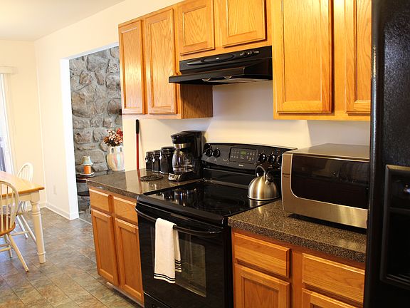 COME SEE THIS HOME WITH A FINISHED BASEMENT! MAIN LEVEL FEATURES A HUGE GREAT RM WITH A HUGE STONE FIRELACE THAT IS WOOD BURNING & VAULTED CEILING, PLUS DINING AREA W/ACCESS TO ONE OF THE 2 DECKS. BRIGHT EAT-N KITCHEN W/NEWER APPLIANCES, WOOD CABINETS & NEWER COUNTERTOPS. MASTER BATH HAS HIS & HER VANITIES, TILE FLOORING, JACUZZI TUB W/TILE & SHOWER HEAD. NEWER VINYL SIDING, ALL ELECTRICAL 10 YRS OLD & NEW WATER HEATER. BASEMENT HAS A HUGE LIVING SPACE, OPTIONAL 4TH BEDRM, 1/2 BATH, WET BAR & STORAGE AREA. NO HOA FEES.