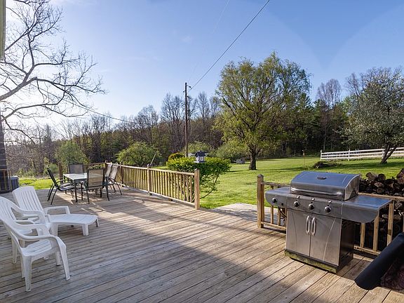 Country living at its finest! 18.65 beautiful acres with a pond ,barn and a beautiful view! Well maintained 3 bedroom 3 bath home with 2 car detached garage. Open kitchen/dining area,spacious living room,first floor laundry and bath with a bonus room and mud room area! Master bedroom with master bath and sitting area. Central air, woodstove,200 amp service,vinyl replacement windows,new furnace and large deck on the back of the house to relax and watch the wildlife!