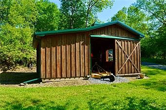 Immaculate private 4 acre lot in Moore Township. Stunning brick and and vinyl home with gracius open floor plan with sweeping views of Blue mountain surrounded by wooded privacy. Newer kitchen with center island, custom cabinetry and huge pantry. Cozy dining room and fantastic 3 season room. The generous master bedroom has gleaming hardwood floors, private master bath and large closet. The lower level is an entertaining dream with built in cabinetry & stone fireplace. There is 12 x 50 wraparound deck perfect for large family gatherings. Every mans dream, a 3 car garage that can accommodate any toy you like and a small barn for storage, horses or other farm animals. This house will not last!