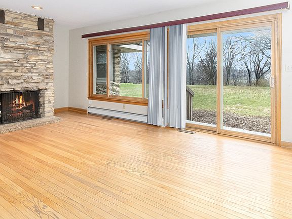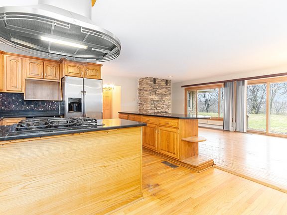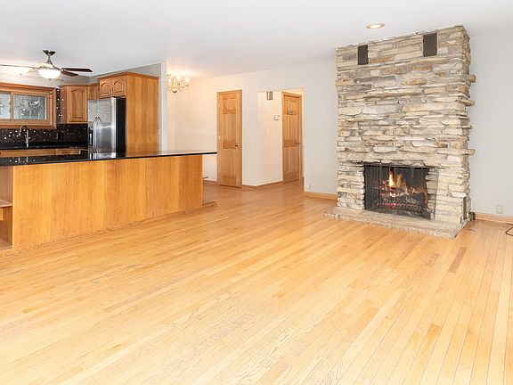 Great Ranch on Half Acre in Channahon! Unique flagstone exterior around. 2 Bedroom and 1 bath. Hardwood Floors throughout. Kitchen and bath have updates but await your finishing touches. Kitchen expands into Living Room with enormous granite bar top, perfect for entertaining. Living room has cozy fireplace with flagstone surround. Newer vinyl woodgrain windows throughout. Large living room windows and patio door overlook the huge backyard. You are literally up on the Bluff, overlooking wetlands, with Channahon Village Hall and Central Park in the background. Finished basement with additional bedroom and mechanical, laundry room. 2 car garage and driveway provide ample space for vehicles. Minutes to I-55, Central Channahon, Parks, Golf Course, and recreation. Sold As-Is.