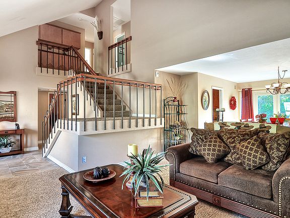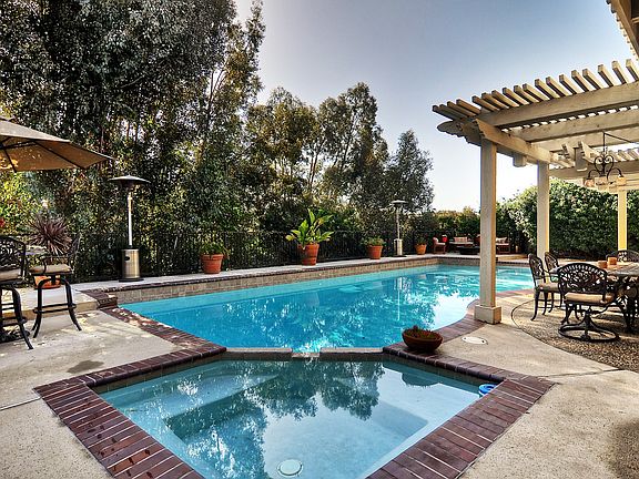 From the moment you enter the custom double door entry you will feel like home. Tile flooring, updated baseboards, six panel doors and soft neutral paint colors carry you to the backyard where you'll find a beautiful pool & spa plus a 3-hole putting green to practice your short game. The backyard is spacious and private feeling with mature trees and a peek of Saddleback Mountain and neighborhood hillside. The kitchen and family room flow out to the back yard through the sliding doors and panel of windows in the kitchen. In the kitchen there are custom craftsman style cabinets, pull-outs, granite countertops and stainless appliances. There is even a huge walk-in pantry the envy of many. The upstairs guest bedrooms are all good size with tree/hillside views. The master bath has been fully remodeled with a beautiful rich tone cabinet and stone dual sink countertop. The travertine shower also has natural stone tile flooring and a rain shower head. The walk-in master closet is lined with built-ins and there is a romantic balcony off the master bedroom. If this isn't enough, there is also a bonus/game room upstairs with space for a pool table. Electrical costs will be low with solar power and you can walk to award winning schools.