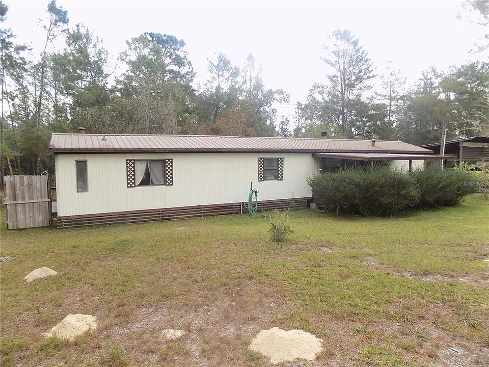 Come and see this AMAZING 3.68 acres of peace and tranquility! This home backs up to the Ocala National Forest directly and has one of the largest sites on the street! When driving up to the property you are welcomed with clusters of beautiful historic trees and enviable peace and quiet. This home is a 924 sq ft singlewide built in 1986, featuring 2 bedrooms and 2 baths. The living room is spacious, allowing plenty of room to entertain family and friends. The fireplace is wood burning and provides the charm, as well as the warmth needed in the wintertime. The Ocala National Forest has 1/2 of a million acres of forest to explore and is home to 600 lakes, 2 rivers, and 3 huge springs. Living here you will never run out of entertainment with swimming, skiing, fishing, hiking, camping, horseback riding, and more only a short drive away! Or you can sit in your backyard and enjoy the beautiful Ocala National Forest with NO REAR NEIGHBORS blocking your view. This house is perfect for a first-time home buyer or someone who wants a quiet get away from the bustle of the city. Everything on the property and in the sheds is being left with the property, with the exception of the RV. Don't hesitate to jump on this opportunity and make this beautiful and serene location in the Ocala National Forest your own!