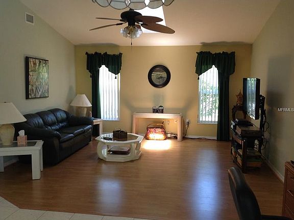 Move-in ready, 3 bed 2 bath 2 car garage turn-key pool home on a greenbelt in desirable Deep Creek! What more could you want? This home is located in a quiet neighborhood on a cul-de-sac street. The deco driveway & front walk way lead you to the screened in front porch. Upon entering thru the double door entryway you are welcomed to the large living room and formal dining room area with pocket slider and beautiful view of the lanai and pool. The large master bedroom has sliders to lanai/pool and dual walk-in closets. The Mater bath features a jetted tub, separate shower, water closet and separate his/hers vanities. Tiled floors in the living room, dining room, kitchen, breakfast nook, bathrooms and utility room--Laminate flooring in the family room, bedrooms 2&3 and the hall way-- Carpet in the master bedroom. Split floor plan. The two additional bedrooms offer walk in closets. The kitchen opens to the family room and breakfast nook and features granite counter tops, newer appliances, a RO system and a pass-thru to the lanai--Perfect for entertaining! Relax by the pool under the large covered lanai and screened in pool area. The pool is heated with an auto vac and access to the guest bath. The yard is nicely landscaped with landscape lighting. Trane AC, double pane windows, roll down shutters and garage door screen sliders & extra storage complete this package. Deep Creek is a deed restricted golf community located near 1-75 in Port Charlotte. Make your appointment to view this home today!