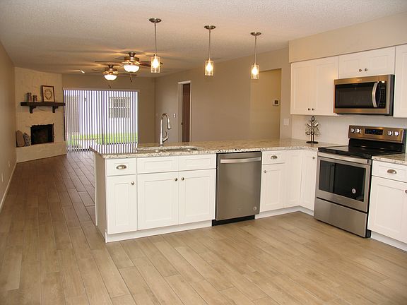 GORGEOUS CONDO WITH 2 CAR GARAGE ATTACHED- 2 BEDROOM 2 BATH WITH POOL VIEW. THIS CONDO IS COMPLETELY REMODELED WITH QUALITY WORKMANSHIP, STYLE AND LOCATED IN WINTER HAVEN FLORIDA. Condo living at its best with your own 2 car garage and one story, so no-one lives above you. This small community of 28 units is quite and convenient with many owner occupied. All new wood cabinets with soft close drawers, granite in kitchen, tile backsplash, stainless steel appliances, porcelain tile that looks like wood, new tile in bathroom shower and new tub, new lighting fixtures, pendent lighting, up to date paint color, new blinds,fireplace, 2 porches/patios, large walk in closet, exterior storage closet, totally painted garage including floor and ceiling, 2013 AIR CONDITIONER, LOW MONTHLY fee includes pool and yard care, pest control and trash. BRAND NEW ARCHITECTURAL SHINGLE ROOFS. "Chain of Lakes" access with dock and fishing pier access or your enjoyment. Public boot ramp near by to access the "Chain Of Lakes" .This central Florida location provides easy access to major attractions. Make this your full time or 2nd home.