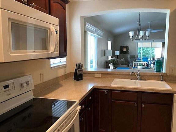 Darling two bedroom Courtyard Villa with a nice golf cart to get you to the Squares! Close to many pools, golf courses and in between Brownwood Paddock Square and Lake Sumter Landing Square. Flat screen in the living area. Laminate and tile through out the whole house. Large sofa, recliner and 2 chairs. Guest room has a queen size bed and flat screen tv. Master bed room is a king size bed with flat screen. Nice outside screened in lanai on the back of the house. Comfortable seating. Kitchen overlooks the dining room and living room area.--July-October monthly $2550 plus taxes & fees--November $2900 plus taxes & fees--December $3000 plus taxes & fees. PLEASE CALL FOR WEEKLY RATES