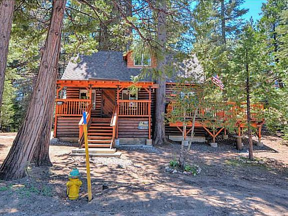 The perfect mountain retreat awaits you in this darling cabin that has been lovingly remodeled. Situated on a level treed lot with a welcoming large wrap-around redwood deck with covered front porch. Main level has lovely rock fireplace in the living room, charming kitchen with repainted/antiqued cabinets, and beautifully redone bathroom. Pull-down staircase leads to attic divided into two sleeping areas with a new dormer sliding window. Living room also has a murphy bed. Plenty of parking!