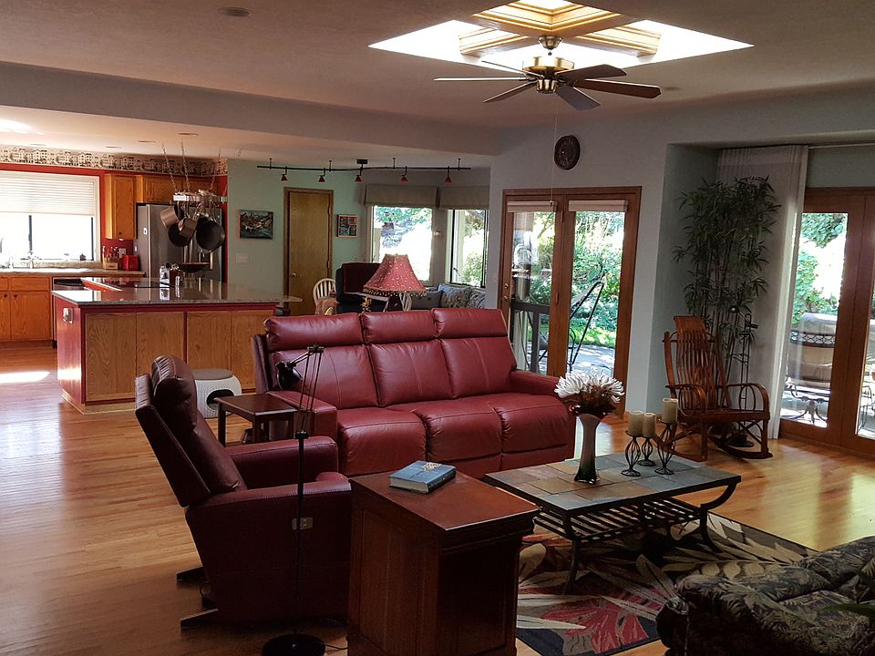 - Interior: Island, Alarm, Window Treatments, Ceiling Fan(s), Garage Door Opener, Central Vacuum