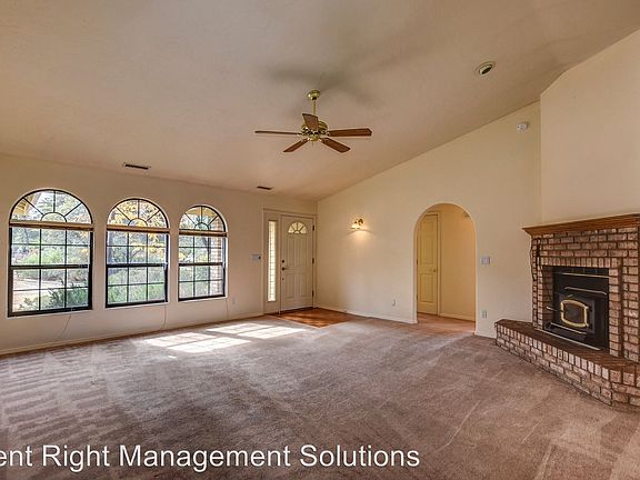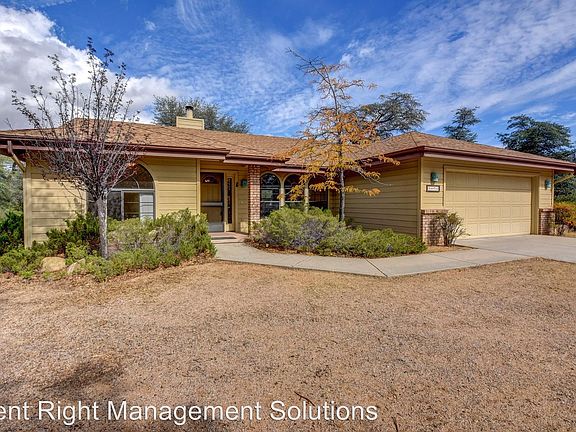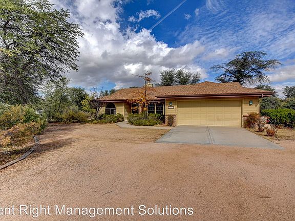 Granite Oaks Home for Rent! Rare Find! - Enter into the large living room with wood burning fireplace. The kitchen opens to a large formal dining area and a breakfast nook with tons of windows facing the private backyard. It also access the back deck perfect for entertaining. The master bedroom is in the east-wing of the house. It has an en suite bathroom with garden tub, shower, throne room, dual vanities and a walk in closet. There are 2 guest bedrooms, a full guest bathroom and a laundry room. There is an attached 2 car garage and storage shed, all on nearly two acres! HOA - No Heating: (Propane) Central Forced Air Cooling: Central AC / Ceiling Fans Utilities: Tenant Pays Electric - APS Propane - Tenants choice Water - Granite Mountain Water Company, Inc. Septic Trash - Patriot Terms: Non-smoking premises Pets negotiable, 2 max under 40 lbs. Horses possible, tenant must provide temporary fencing. No livestock. No college students. Year lease. Renters Insurance Required. Move In Costs: $35 application fee (per person 18 and over). $175 carpet cleaning fee. $100 administrative fee. Deposit is equivalent to 1.5 times one month's rent. Rent and/or prorated rent. Call Rent Right today at 928-771-0308 to schedule a showing. Information is deemed to be reliable, but is not guaranteed. (RLNE4478531)