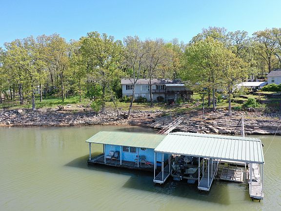 FISHERMEN'S PARADISE AND GRAND LAKE RETREAT!!! 150 FEET OF WATERFRONT!! Located in the main channel of the Elk River area of Grand Lake this spot has DEEP WATER with lots of fish cover lying beneath an enclosed, heated fishing dock. The dock includes 2 boat slips with lifts. After a day of fishing, and fun on the lake, relax on your covered deck and enjoy the GORGEOUS VIEW!! Also included is a two bed/two bath home with a garage that could be easily renovated into more living space. BOLT fiber optic internet services the house. Seller is including a credit at closing up to $20,000 to make needed improvements to boat dock. Looking to invest in a VACATION RENTAL?? CHECK THIS ONE OUT!! 360 Virtual Tour OF PROPERTY IN PHOTOS SECTION.