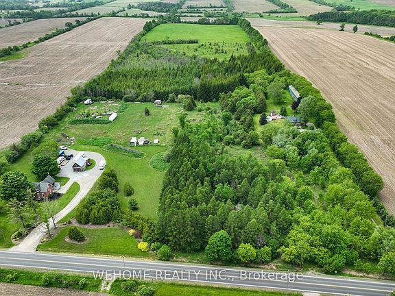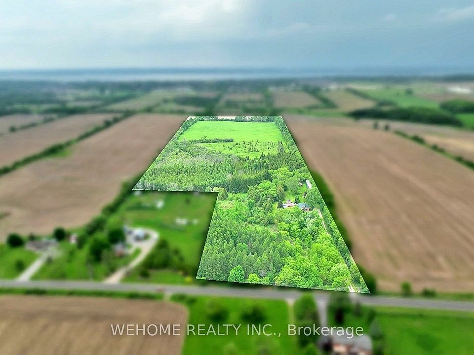 Prime Investment Opportunity! This 34.79-acre land features a cozy 3+1 bedroom, 2-bathroom home, perfect for investors or a peaceful retirement. Surrounded by mature trees and open fields for hays, it's just 7 minutes from Highway 404, beaches, lakes, and shopping plazas. Potentially situated near or on the proposed Highway 404 extension, it offers great investment potential. Enjoy added security with remote gates. Recent updates include fresh paint, new vinyl flooring, and new second-floor windows.