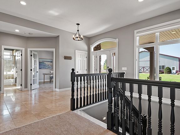 Hard to find turn-key executive horse hobby property on 16 acres. Stunning walkout rambler, QUALITY HME, no detail has been overlooked. Limestone floors, Trex deck, heated garage, in floor heat in lower level, primary suite. Property is fenced and ready to go with a 6 stall heated barn (in floor heat) with tack, wash bay, bathroom, lounge. 60 x 112 indoor riding arena, outdoor riding arena, automatic waterers, lean to's and feeders. Do not miss this opportunity for an amazing equestrian property!