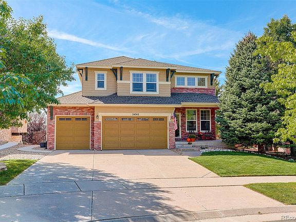 Look no further! This immaculate home not only checks all the boxes, it is a shining star of Tallyn's Reach and the pride in ownership shows! Captivating views of Pikes Peak and the front range mountains, a fully finished walk-out basement, three-car garage, four bedrooms on the upper level and a fifth guest bedroom in the basement are just some of the features that set this home apart. You will love the spacious kitchen with refinished cabinets, a center island, eating space and an abundance of storage and counter space. The cozy family room is right off the kitchen and features a stately fireplace with mantle. The formal dining and living rooms welcome you in and the high vaulted ceiling creates a grand entry! The finished walk-out basement is built for fun; a perfect place to entertain, a movie night, catch a game or play a game and comes complete with a custom wet bar! This home is filled with natural light, it is warm and inviting. Outdoor living at its best with an expansive deck that features a pergola for shade, a lower covered patio and covered front porch! This home is ideally located on a quiet cut-de-sac, within walking distance to the top-rated Coyote Hills Elementary School, in the Cherry Creek School District. As a Tallyn's Reach resident, you will enjoy many amenities including a neighborhood pool with clubhouse, several playgrounds, tennis courts and walking/biking trails. Very easy access to shopping, dining, entertainment, outdoor recreation and so much more. Don't wait to see this amazing home!