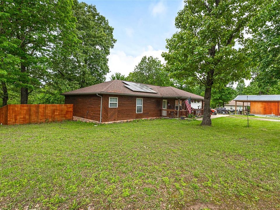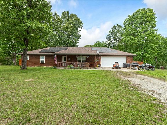 This 3 bed 2 bath home with attached garage is located next to thousands of acres of Mark Twain National Forest, minutes from Big Piney River access and 15 minutes to Ft. Leonard Wood front gate. Enjoy a spacious open floor plan with stone fireplace, mudroom, and oak cabinets. Relax with nature views from every bedroom and a spacious main bedroom with walk-in closet and jetted tub. A new backdoor with pet access leads to the zero maintenance deck overlooking a large fenced yard surrounded by trees. Solar panels installed in 2021, a new tankless hot water heater with filtration system, and energy efficient appliances are easy on the pocketbook. Detached workshop with concrete pad and covered entrance and raised garden beds make this 2.24 acre property ready for your projects. A Husqvarna lawn tractor and push mower come with the home. Deer, turkey, and other wildlife abound in this hidden gem on Misty Mountain. Additional Rooms: Mud Room