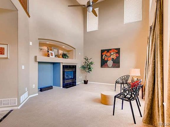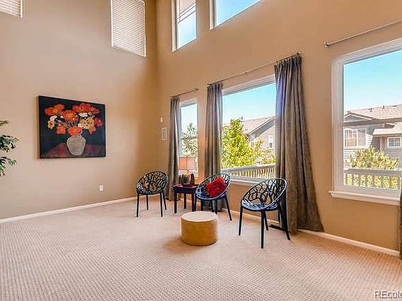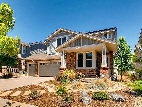 Super energy efficient beauty offers solar, new windows on most living areas, xeriscaped front and low maintenance back yard ($50-65 water bills!). Solar lease has been fully pre-paid - no cost to the new buyer! Marble-like floors in entry, DR, kitchen and ES, berber carpet in great room. Abundant light everywhere. Chef's delight of a kitchen with black granite, gleaming cabinets, black appliances, double oven & side-by-side RF. Convenient ES for casual meals + formal dining. Great room has FP, 20' ceilings, ceiling fan. Big deck overlooks low mtce yard w/"turf", nice landscaping. Master suite is adjoined by huge spa-like bath w/whirlpool tub, stand-up shower, double sinks, 9x 8 walk in closet. Finished bsmt is a gigantic play room with space for a pool table and more, or new owner could add a wall to create a 4th bedroom. Murphy Creek feels like a sparkling country town, away from traffic and noise, yet 20 minutes from downtown Denver. Golf community and easy access to DIA.