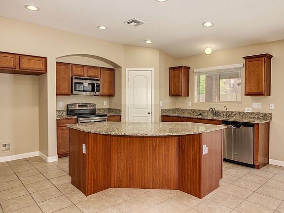 Come see this one-level Buckeye home located near a neighborhood park and basketball courts! Step inside and you will see a Great room offering an eat-in kitchen with granite countertops, breakfast bar, and stainless steel appliances and a living room area. Down the hall, the Master bedroom offers a walk-in closet and an ensuite bathroom with a separate shower/tub. Out back, you can relax under the covered patio or play on the grassy lawn. Home is conveniently located near Skyline Regional Park, Schools, and I-10. This home comes with a 30-day satisfaction guarantee and one-year premium warranty. Terms and conditions apply. Open House: Mon-Sun, 6am-9pm
