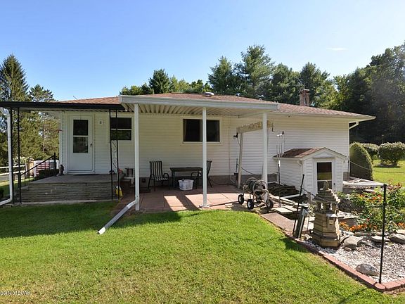 Exceptionally well maintained ranch in very nice, private 5.33 acre setting. Spring fed pond on property. Hardwood floors. Newer HVAC heat pump system provides central air. Partially finished basement includes 1/2 bath. Two canvas enclosures provide vehicle protection. 3 sheds. Front & rear porches. Patio.