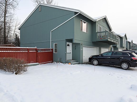 Awesome townhouse on a corner lot with beautiful landscaped yard and deck. Home is very well maintained and shows pride of ownership. The location is good with nearby university, JBER, schools, parks, shopping, entertainment, etc. Home is updated with laminate floors, tile kitchen backsplash, custom touches. All appliances stay, surround sound stays. Dining room mirrors, living room TV can stay.
