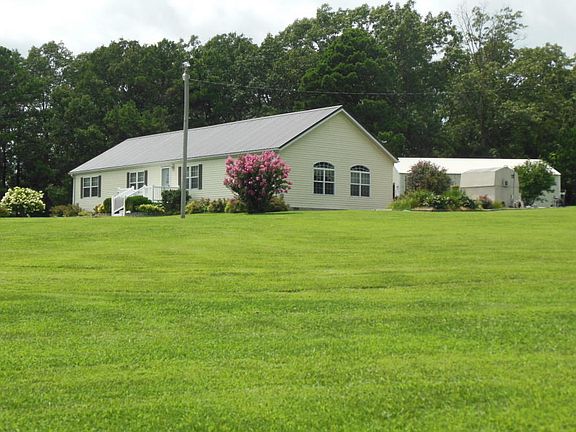35 acre hobby farm with a beautiful, private setting! The spacious, maintenance-free, 3 bedroom home has vinyl siding and a metal roof and offers an open floor plan featuring a 13x16 living room, a large family room with wood-burning fireplace, a lovely kitchen with breakfast room and bar, and a 12x16 formal dining room. Large master suite with garden tub, shower, and dual vanities. Inviting, covered back deck where you can enjoy the wonderful landscaping and the country setting, yet the property is less than a mile from town, the 4-lane and National Forest! 30x38 garage/shop with concrete floors and 220 electric service. Garden shed, above-ground storm shelter, nice pond, about 15 acres in pasture, the balance in woods. This is a must see!
